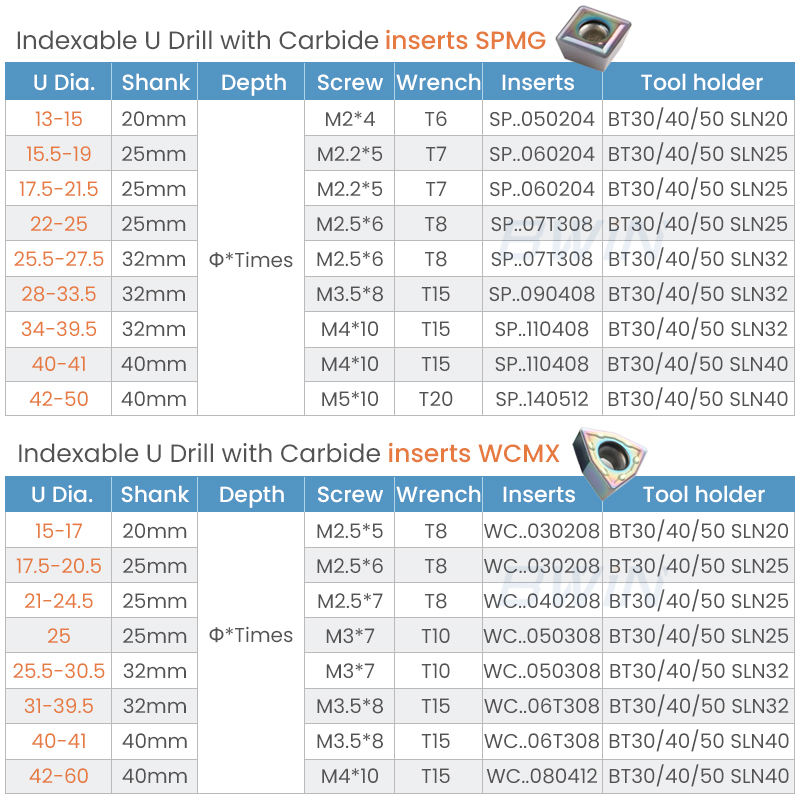 <h1>Высокоскоростное индексируемое сверло U-образной формы 2D, 3D, 4D для CNC</h1>